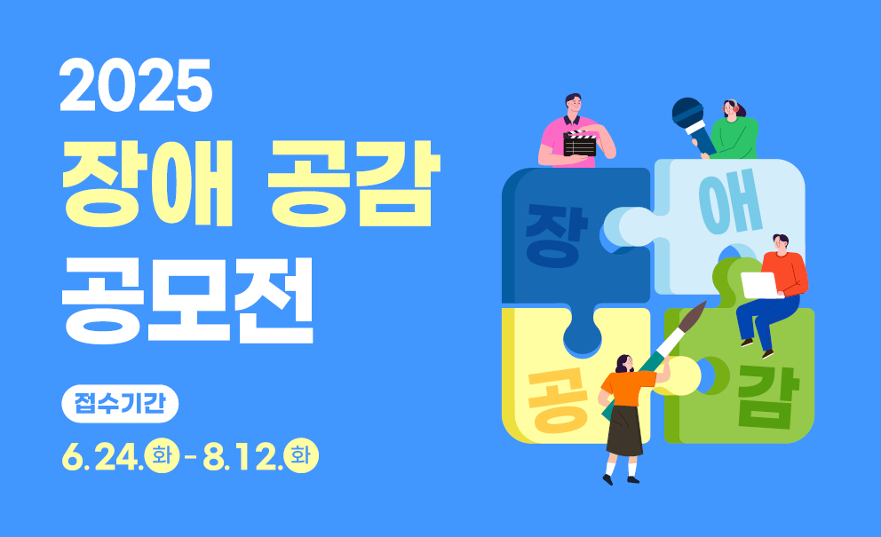 사업내용 장애와 장애인에 대한 이해를 돕고, 다름에 대한 공감과 인식개선을 위해 2015년부터 매년 장애 공감 공모전을 진행하고 있습니다. 참가자격 장애 공감에 관심있는 누구나(개인 또는 팀) 공모분야 웹툰, 영상(쇼츠), 라디오, 포스터 수상혜택 보건복지부 장관상 외 다수의 상장 및 상금수여