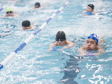 물을 무서워한다거나 수영장 공간의 소음에 민감한 학생들도 있습니다. 그럴 때는 물에 대한 적응력을 키우고 차츰 수영장에 들어갈 수 있도록 유도합니다. 또한 맞춤식 과제를 제시하여 개별 목표를 설정하고 훈련할 수 있도록 이끕니다.