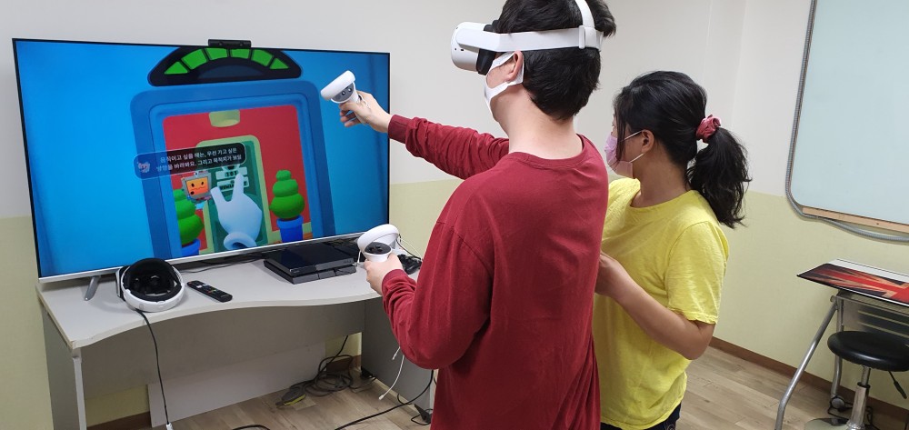 사업내용 VR콘텐츠 교육을 통한 장애인 직업 다양성을 확충하고 직업재활교육을 진행하여 취업역량을 강화합니다. 비장애인의 VR장애체험을 통해 장애인의 어려움을 이해하는 기회를 마련합니다. 수요자 지적장애인 6명, 자폐성 장애인 1명, 뇌병변 장애인 2명 지원내용 장애인 VR재활훈련, 장애인 직업교육, VR장애인교육 콘텐츠 제작, 힐링VR체험, VR장애체험 협력단체 사랑나눔행복한동행