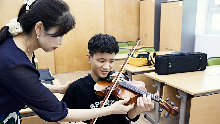 비로소 좋은 음악을 만들 수 있죠. 협업의 자세가 필요한 오케스트라 활동을 통해 학생들이 타인을 이해하고 공감하고