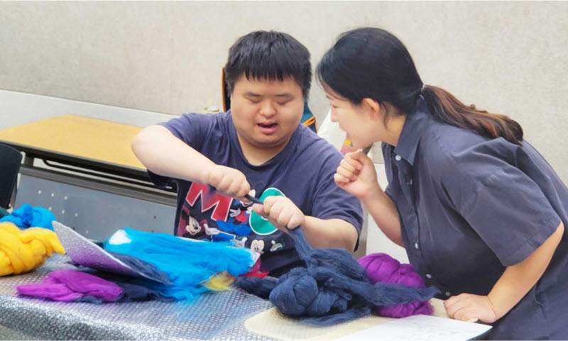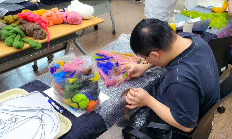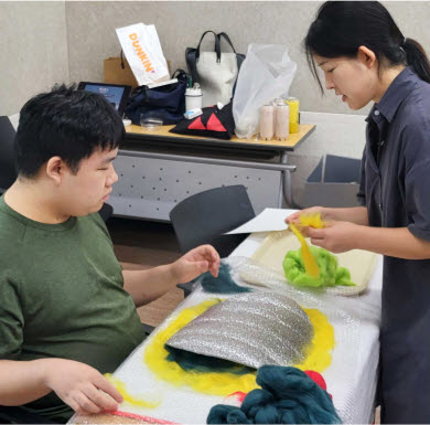 발달장애인들 중에는 감각이 예민한 사람이 많아 처음에는 걱정도 됐다고 합니다. 펠트 작품은 단순하지만 만드는 데 시간이 오래 걸려 수강생들이 집중력을 유지할 수 있을지도 고민이 됐습니다. 하지만 막상 수업을 시작해보니 수강생들은 펠트에 빠져들었습니다.