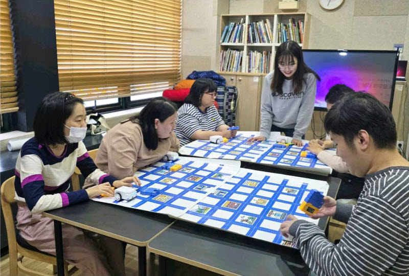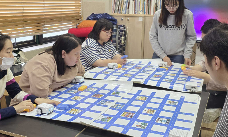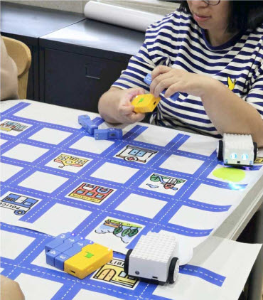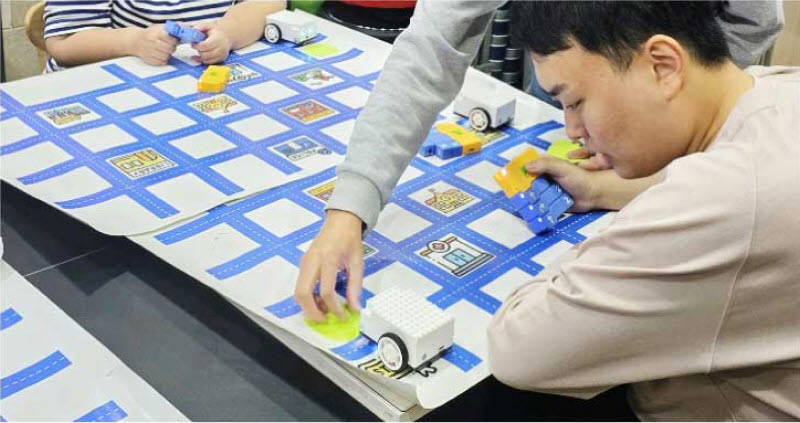 “처음에는 강사를 보고 따라하는 정도로만 진행했어요. 그러다가 과정을 보여주지 않고 시작점과 도착점만 설정해서 직접 움직여 보도록 했지요. 처음에는 어려워했어요. 로봇이 목적지까지 가려면 앞으로 두 번 가야 한다는 걸 이해하기 어려웠던 거예요. 하지만 차츰 학생들이 스스로 해냈습니다.”