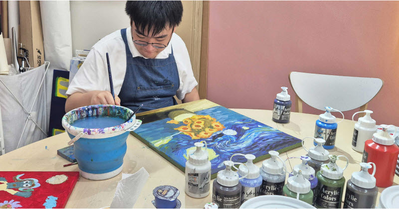 한층 높아진 가을 하늘이 모두를 반기던 지난 10월 어느 토요일 오후. 서울 강동구 한 화방에는 특별한 화가들이 모였습니다. 발달장애를 지니고 있지만 자신만의 눈으로 세상을 바라볼 줄 아는 5명의 예술가들은 저마다의 방식으로 캔버스를 화사한 색으로 채워가고 있습니다. 그림이 어딘가 익숙하면서도 새로운데요. 인상주의 대표 화가로 불리는 빈센트 반 고흐의 그림 스타일에서 영감을 받는 한편, 각자가 좋아하는 요소를 그림에 넣어 재해석했기 때문입니다.