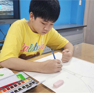 임 작가는 아이들에게 남다른 집중력이 있었다고 말합니다. “지현 양은 섬세한 묘사에 재능이 있어요. 보통 학생들이 어려워하며 손도 대지 않을 묘사를 끝까지 해내는 집중력이 있는 학생이이죠. 정우 군은 공감각적 구조를 이해하는 데 뛰어나요. 자전거를 한번 보여주고 그려보라고 하면 그게 어떤 선과 도형으로 이뤄져 있는지를 빠르게 파악하고 그려내요. 디지털 미술에 반드시 필요한 재능이죠.”