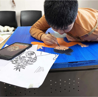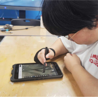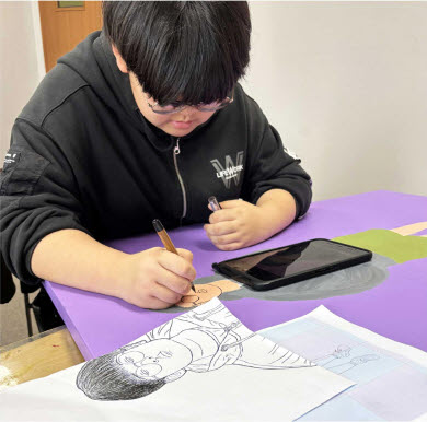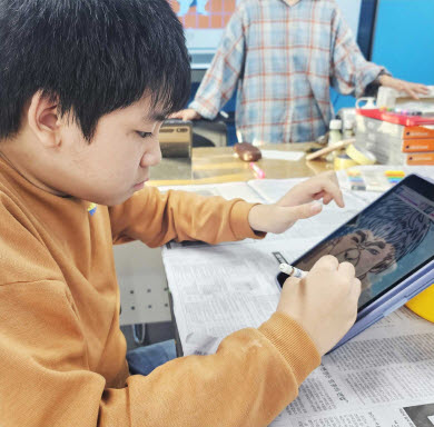 “소규모 수업이다보니 아이에게 밀착해서 기다려주고 의사를 존중하며 취향을 찾아가는 게 가능했어요. 디지털 수업은 도구를 알려줘야 진행될 수 있다는 특징이 있거든요. 처음에는 익숙한 방식으로만 하려고 하는 모습을 보였는데, 저희는 계속 기다렸어요. ‘펜슬을 줘볼래? 이걸 주면 우리가 다른 방법을 가르쳐줄 수 있는데’ 하면서요. 그랬더니 저희에게 믿음이 생겨서인지 나중에는 정말 원활하게 새로운 도구를 알려주고 작품 활동을 이어나갈 수 있었어요. 이렇게 처음에는 수업을 어려워했던 학생이 점점 변화하고 저와 라포가 형성되는 것을 보면서 감동을 받았어요.”