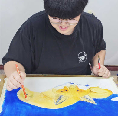 서귀포시장애인종합복지관이 지난 6월부터 오는 12월까지 진행하고 있는 ‘2024 술래잡기 프로젝트!’ 중 한 수업의 모습입니다. 수업을 기획하고 진행한 임소희 작가는 “지현 양(가명・13)은 회화에 재능이 있고, 정우 군(가명・14)은 디지털 미술에 재능이 있어 이 두 아이가 어떻게 시너지를 낼 수 있을지 수업 방식을 많이 고민했다”고 말했습니다.