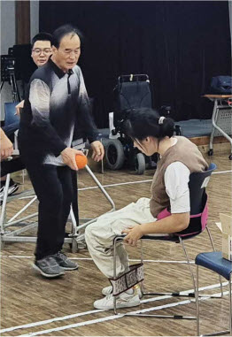보치아의 매력은 하얀 표적구 가까이에 공을 딱 붙였을 때의 통쾌함이라고 해요. 상대팀 공의 길목을 막는 전략도 필요합니다. 요즘 장병주 코치가 민성 학생에게 가장 많이 주문하는 것은 조금 더 빠르게 공을 던지도록 하는 것이에요. 시간을 지체하면 아웃이 되기 때문이지요. 던지기가 느린 민성 학생을 위해 장병주 코치는 옆에서 숫자를 세며 시간을 체크합니다.