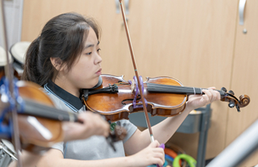 "바이올린이 재미있어요. 앞으로 '베토벤 바이러스'나 '엘리제를 위하여'도 연주해 보고 싶어요. 또 연말에 열릴 연주회도 기대하고 있습니다. (참가자 구하람 학생)"
